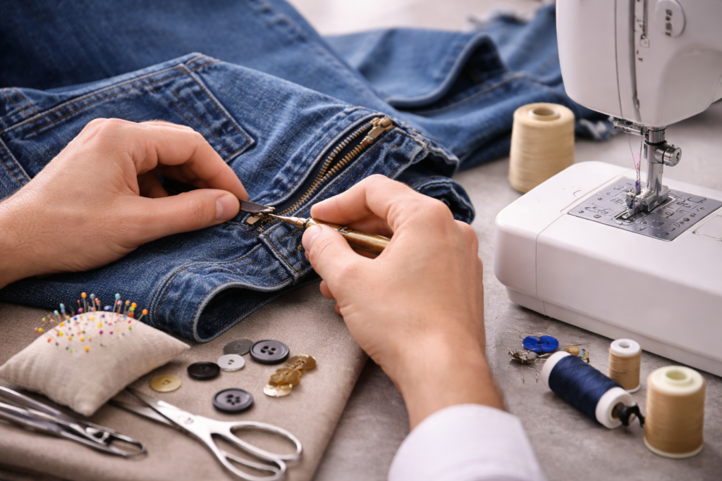 Repairs and restitching for everyday wear and tear, including seam fixes, loose stitching, and small garment repairs. Bring the item in and point out the areas that need attention, and we will confirm what can be repaired based on the fabric and construction.